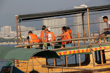 10月31日下午1點(diǎn),所有同事乘車從深圳出發(fā)開往惠州,大概4點(diǎn)左右到達(dá)此次旅游的目的地——巽寮灣。今天的活動(dòng)是出海捕魚,所得可晚上加餐。捕魚的過(guò)程是枯燥的,聽從導(dǎo)游的建議,中途我們乘坐游艇去領(lǐng)略了周邊的景色。